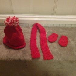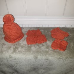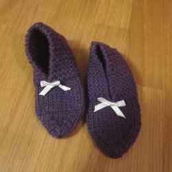 Ett par handstickade tossor i en fin mörk rosa färg. Perfekt för att hålla fötterna varma och sköna. Prydda med en liten vit rosett.