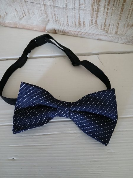 Fluga i mörkblått med vita prickar. Flugan har ett justerbart band för att passa olika halsstorlekar.