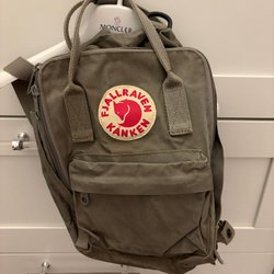 Kånken Mini ryggsäck för barn i mycket fint skick. Ryggsäcken har justerbara axelremmar, bärhandtag upptill, två platta sidofickor och en liten frontficka med dragkedja.