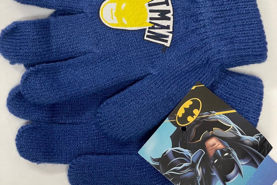Ett par barnvantar med motiv från Batman