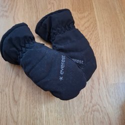 Vantar i svart färg med förstärkning i handflatan. Ytterlagret har släppt lite på vänstervantan.