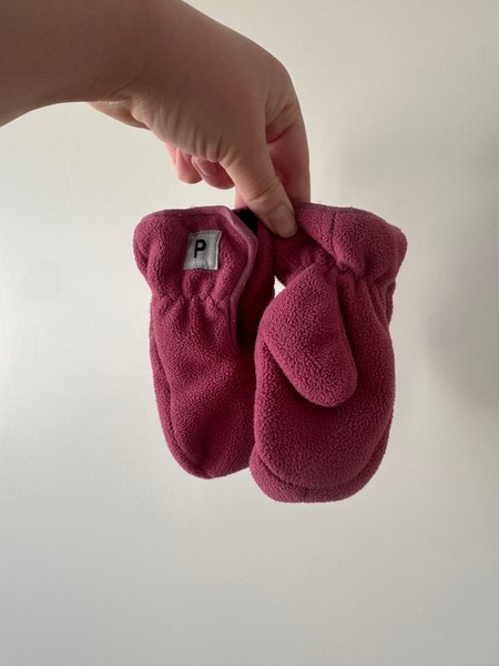 Ett par vantar i en mörkrosa färg. Vantarna har resår vid handleden för en bra passform.
