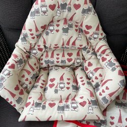 Ett par ljusblå vantar med resår runt handleden och band för att fästa vantarna i jackan. Använda 1 höst