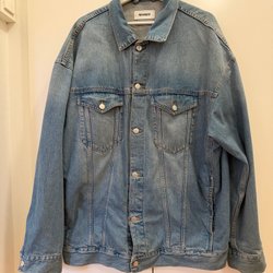 En i läder med sherpa på insidan. Fint skick, men nåt lite skav samt några fläckar, se bild