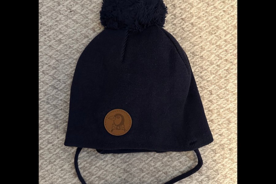 Mörkblå mössa från Mini Rodini säljes i fint skick! Med knytband i storlek 44-46.