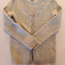 Handstickad (av mig) kofta för bebis/barn. Raglanärm. Stickad i Pernilla från Filcolana (100% ull). Randig i färgerna natur och marsipan. Knappar i ljust puderrosa. Tunnare variant som passar bra till våren. Aldrig använd. Kommer från rök- och djurfritt hem. Passar ettåring, notera måtten nedan!