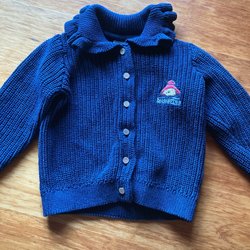 Stickad kofta med knappar framtill. Hemma stickad kofta. Passar cirka 5-6-åring.