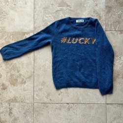 Stickad härlig hösttröja med polokrage och långa ärmar. Tröjan har ett flätat mönster framtill och detaljer på ärmarna. Vacker grå-lila färg, supergosig tröja. Använd av ett barn, men i fint skick. Nypris ca 800 kr