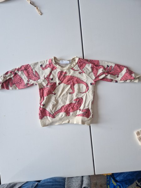 Tröja med långa ärmar och rund halsringning. Tröjan har ett mönster av rosa ödlor med svarta prickar över hela plagget.