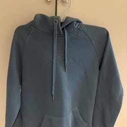 Blå Peak Performance hoodie. Två små fläckar på framsidan. (Se bilder) Går säkert bort med galltvål :)