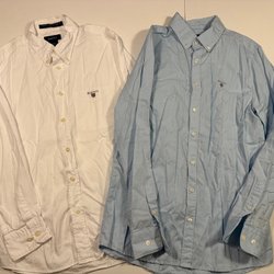 Svart Gant hoodie med logotyp på framsidan och en ficka på magen. Hoodien har en röd detalj vid halsen och är i storlek 146/152 cm eller 11-12 år. Bra skick, ser lite urtvättad ut på bilden men det är den inte, se även muddarna i bild 4
