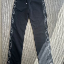 Svart Givenchy Kids zip-up hoodie med logotyp och glitter rand. Fin hoodie från Givenchy kids. Två sista bilderna visar hoodien i butik, äkta vara. Dyr i inköp. Står storlek 12+ men liten i storlek så skulle säga 11-12 år. I fint använt skick, passande Givenchy byxor med glitter rand finns i annan annons.
