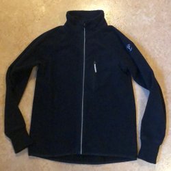 Svart hoodie med dragkedja och fickor fram. Broderad logotyp på bröstet.