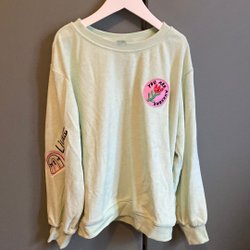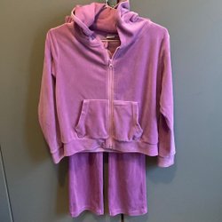 Ljusbrun hoodie med dragkedja och "My Melody" tryck fram. Kort modell. Jackan är nästan oanvänd, men på byxorna har ett litet hål på baksidan.