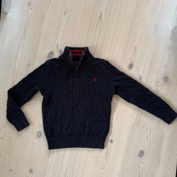 Tröjan är i använt skick. Inga hål eller defekter men märk att den är tvättnoppig på armbågar och nedtill.