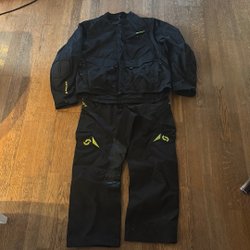 Svart fleecejacka med hög krage och dragkedja fram. Jackan har även dragkedjefickor på sidorna och en broderad logotyp på bröstet, med tillhörande fleecebyxor.