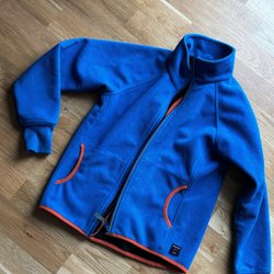 Blå fleecetröja med tryck. Vi är djur- och rökfria i hemmet. Jag samfraktar gärna så passa på att kika på mina övriga annonser. Fråga mig om du undrar något!