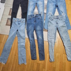 Ett par blå jeans med Hello Kitty motiv på ena benet. Fint skick. Strl 128. 8 år. Tajta.