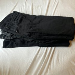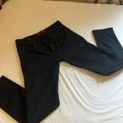 Jeans med dragkedja och knappar framtill. Byxorna har fickor fram och bak. Sverige flagga som jag målade själv på bakfickan det går nog att få bort de!
