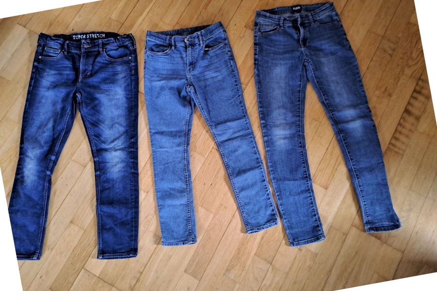 3 par jeans i olika nyanser av blått. Alla jeansen har en smal passform och är designade med klassiska jeansdetaljer som fickor och bälteshällor.