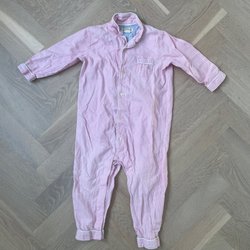 Ljusrosa byxor, lite som leggings, med fin spetsdetalj längst ner. Från Newbie i storlek 62.