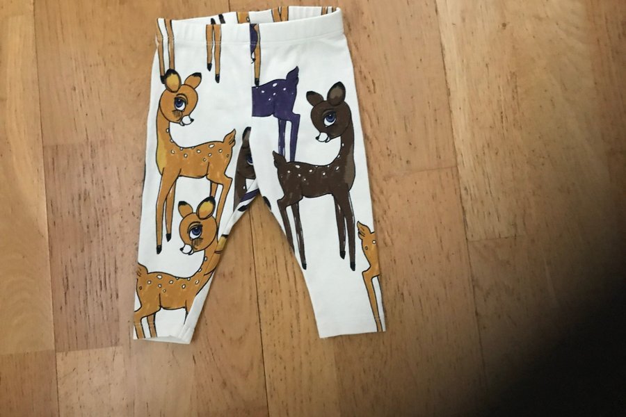 Leggings med sött rådjursmönster från mini rodini i olika färger såsom brunt lila och orange.