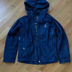 Rosa jacka med huva, dragkedja och fickor fram. Reflexer finns på ärmarna och baksidan av jackan. Lite sliten i armarna.