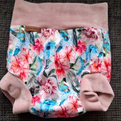 Färgglad jacka i grönt, turkost och marinblått. Jackan har luva och dragkedja framtill samt två fickor med dragkedja. Det finns fläckar på jackan, se bilder.
