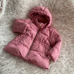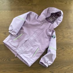 Rosa, quiltad jacka med krage och knäppning framtill. Jackan har två fickor fram. Snygg rosett bak på ryggen. Storlek 4 år.