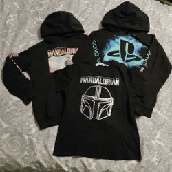 Marinblå jacka med huva. Jackan har dragsko i midjan och muddar i ärmarna. Det finns fickor framtill. Jackan stängs med dragkedja och knappar. Det finns ett litet hål på luvan, den inte delen av luvan är helt. Vind och vattenavvisande, perfekt för höstens äventyr!