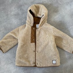 Brun jacka med huva från Lindex. Jackan har två fickor fram och stängs med knappar. Fodret i huvan är färgglatt med prickar, perfekt till hösten.