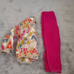 Ljusblå fleecejacka med tryck av snöflingor i lila, rosa och vitt. Jackan har en bild av Elsa från filmen Frost på bröstet och stängs med dragkedja.