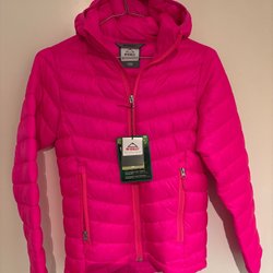 Lättviktsjacka i en ljusare rosa nyans. Jackan har en dragkedja framtill och en hög krage.