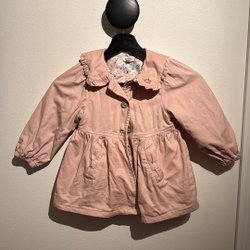 Söt rosa skaljacka med huva och volangdetaljer. Jackan har en dragkedja framtill och fickor med reflexdetaljer samt en reflex baktill på jackan.