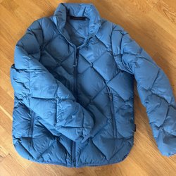 En lätt vadderad jacka med huva och dragkedja framtill. Jackan har två fickor fram och är kviltad i ett diamantmönster.