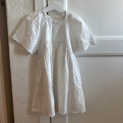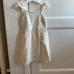 Beige/vit overshirt/jacka med luva och två fickor framtill, knäpps med tryckknappar. Jackan har långa ärmar och knäpps med knappar.