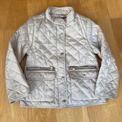 Grön jacka från fjällräven. Har huva som man kan "fälla in". Storlek 170. Vet ej om det är tjej eller killjacka. Svårt att fota den riktiga färgen på jackan så färgen skiljer sig från bild och verklighet.