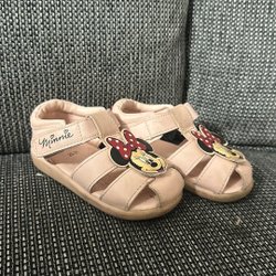Grå jacka med dragkedja och ett mönster av Minnie Mouse med rosa rosetter och vita prickar. Jackan har en huva med Minnie Mouse öron.