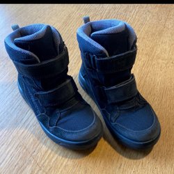 Mörkrosa vinterjacka från POP i stl.128 med knappar och dragkedja. Jackan har en avtagbar huva och reflexer på ärmarna. Två små fläckar nära dragkedjan enligt bild, som inte syns när jackan är knäppt. I fortsatt gott skick och har mycket kvar att ge!