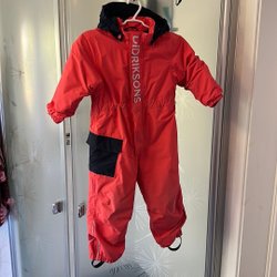 Använd i ok skick, se bilder. Varmfodrad. Avtagbar huva. Storlek 130 cl.