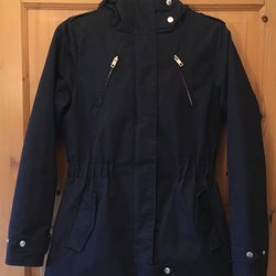 Jackan är av god kvalitet och i gott skick. Alla dragkedjor, tryckknappar, kardborreband samt dragskor fungerar som de ska. Inga skador eller fläckar. Se vidare bilder
