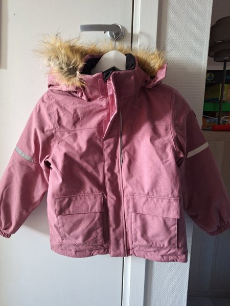 Rosa vinterjacka med huva och fuskpäls. Jackan har två fickor fram och reflexer på ärmarna. Kommer från Polarn o Pyret och köptes förra vintern, motsvarar årets Arctic. Oanvänd utan lapp.
