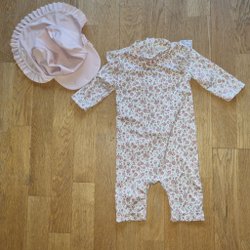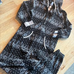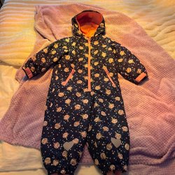 En jätte mysig fleeceoverall i leopardmönster 86/92. Man kan fälla in både på händer och fötter för att få som vantar. Fint begagnat skick.