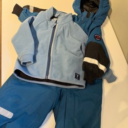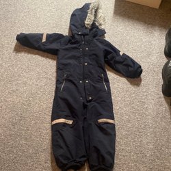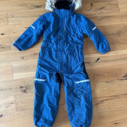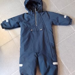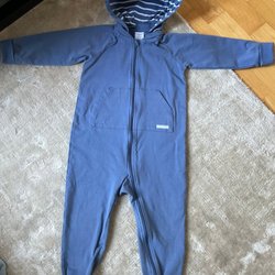 Mörkblå overall med dragkedja framtill. Overallen har långa ärmar och ben.