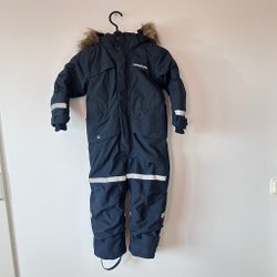 Didriksons overall i mörkblå färg med huva och reflexer.
