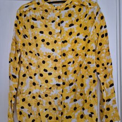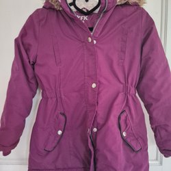 Brunorange overall med blått leomönster. Overallen har luva och reflexdetaljer och ficka på bröstet. Fothällorna är hela. Superfint skick, sparsamt använd av ett barn en säsong.