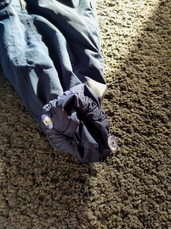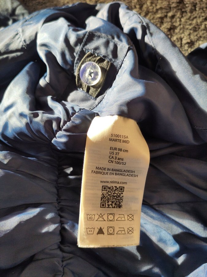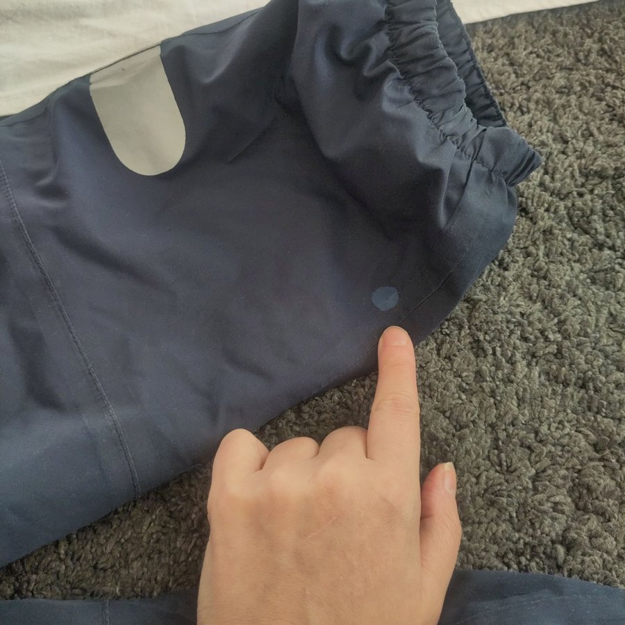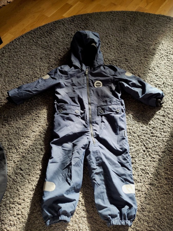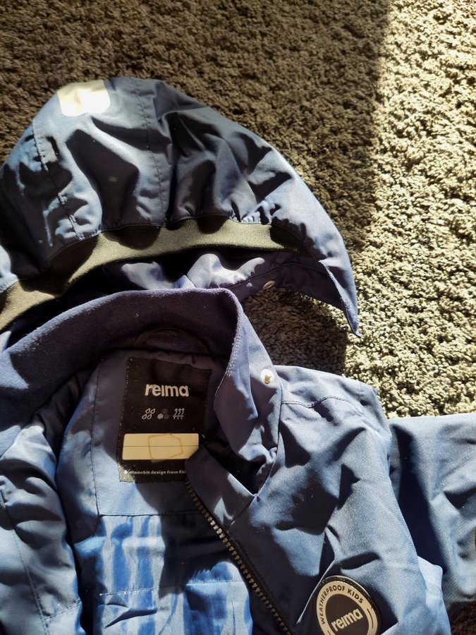 Reima overall i blå färg med avtagbar huva. Overallen har två fickor framtill och justerbar midjan. Reflexer finns på ben och ärmar. På baksidan och benen finns små hålar som har fixat med lagningslapp för utekläder, kolla bilder.