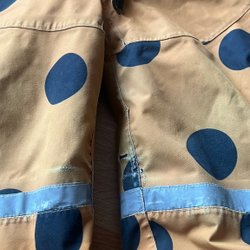 *färgskiftningar på det rosa tyget, som tydligast i slutet på ärmarna men syns också framtill om du tittar noga (dock inte så starkt som på många andra begagnade overaller)