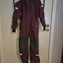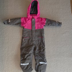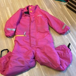 Lila vattentät vinteroverall från Didriksson. Storlek 110 men tycker Didriksson har stora storlekar som passar länge. Lite sliten på rumpan och nedtill vid fötterna. Går att reglera i midjan.