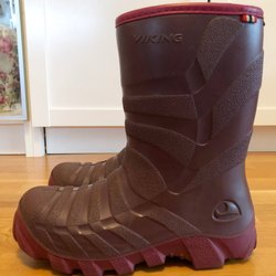 Fleecefodrad overall från POLARN O. PYRET i stl. 104. Ceriserosa med svart fleecefoder. Fodret är avtagbart med tryckknappar. Avtagbar luva med tryckknappar. Resår i ärmsluten och längst ner på benen. Elastiska fotremmar att sätta under skorna. Dessa är slitna, se bild. Det finns nya att köpa för en liten summa om man vill det.